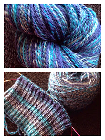 Her er garnet tatt i bruk - nå skal skal det bli Sockhead hat på gubben ;) (mønsteret er gratis på Ravelry.com)